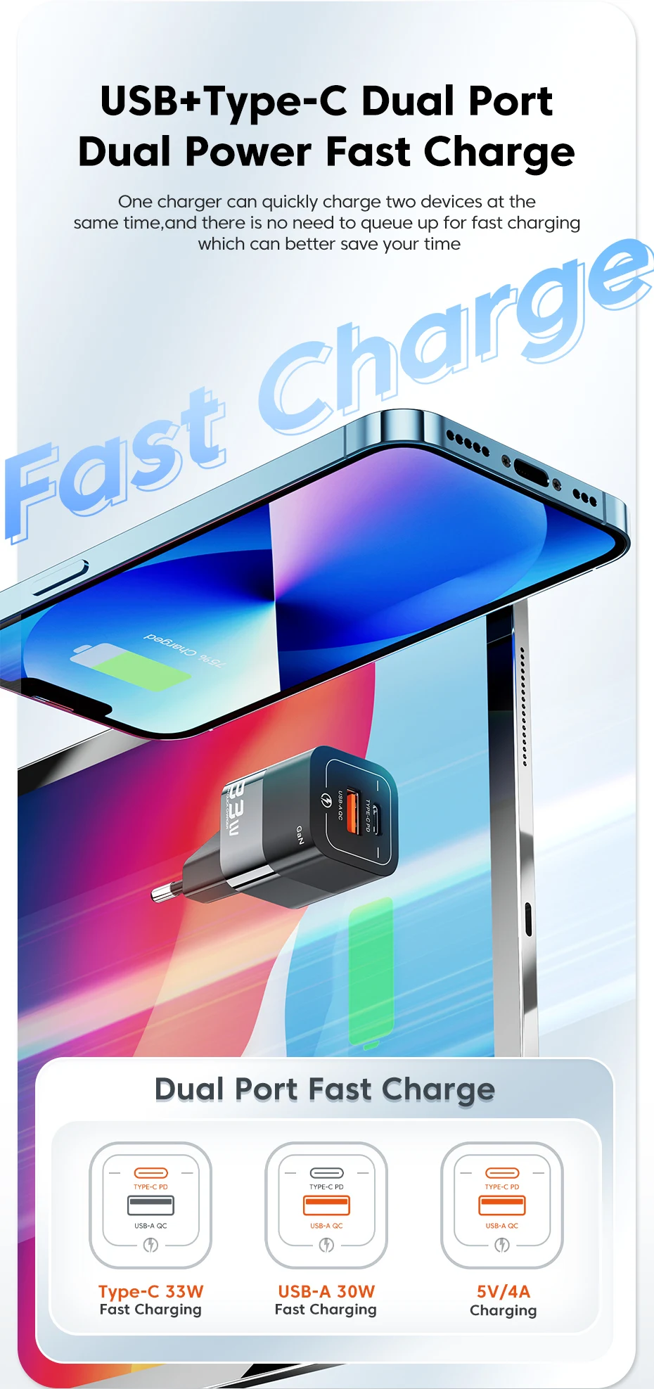 Toocki 33W GaN Dual-Port Super Fast Charging Power Adapter