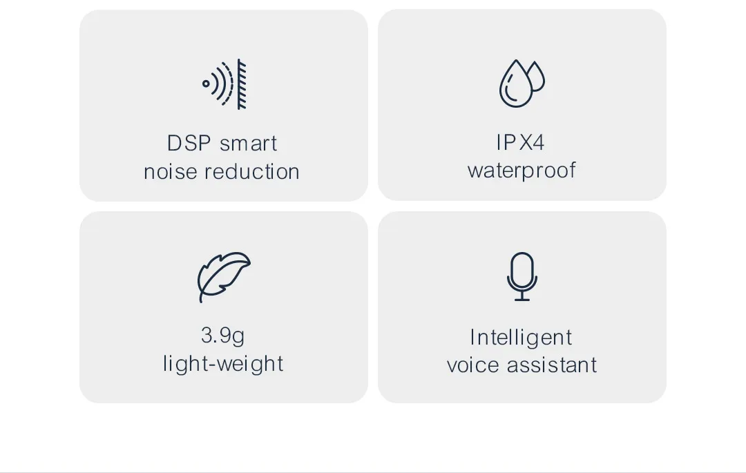 Haylou GT3 TWS - wireless TWS headphones of traditional shape, Bluetooth 5.0, battery life up to 28 hours on one charge, DSP noise reduction, 7.2mm diaphragms, IPX4 sweat resistance, touch control - next/previous track, play/pause, voice assistant activation, answer/reject a call, charging via USB-C, very light - the earphone weighs only 3.9g, three sizes of silicone ear tips