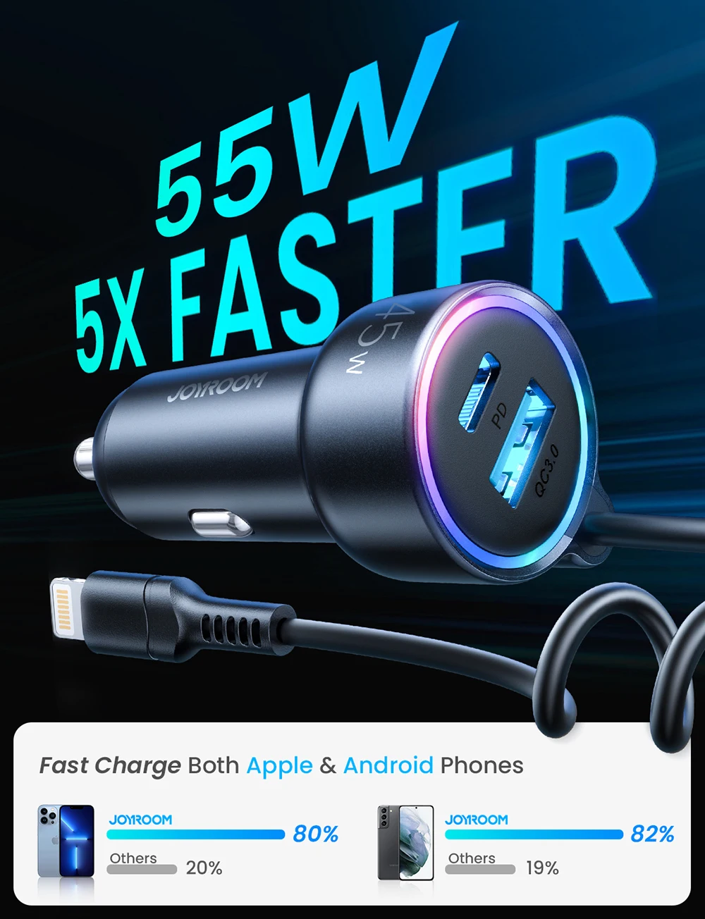 1.【Charging 3 Devices Simultaneously】This car charger enables you to charge 3 devices simultaneously at maximum speed 4A. It works for all USB-powered devices. No passenger should have to wait for other devices to complete charging. Please note: Joyroom car usb adapter does not support Qualcomm Quick Charge, the charging page WILL NOT show fast charge when charging.