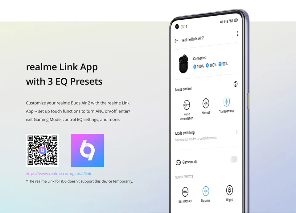 Customize your realme Buds Air 2 with the realme Link App -- set up touch functions to turn ANC on/off, enter/exit Gaming Mode, control EQ settings, and more.