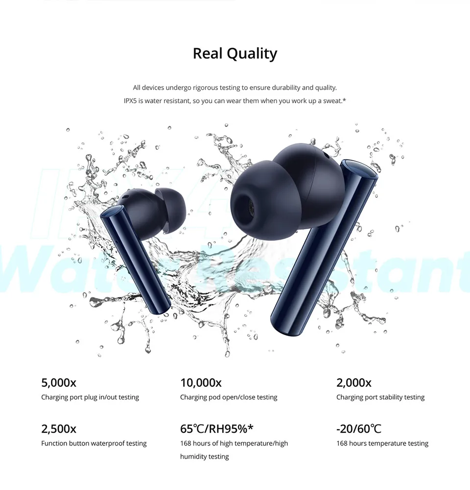 All devices undergo rigorous testing to ensure durability and quality. IPX5 is water resistant, so you can wear them when you work up a sweat.*