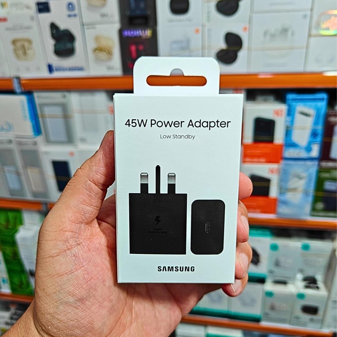 Charge your Samsung phone at blazing speeds with the Samsung 45W Super Fast Charger. Featuring Super Fast Charging 2.0 technology, this charger powers up your device quicker than ever before, making sure you’re back to 100% in no time. It’s perfect for Samsung Galaxy phones and even works with other USB-C devices.