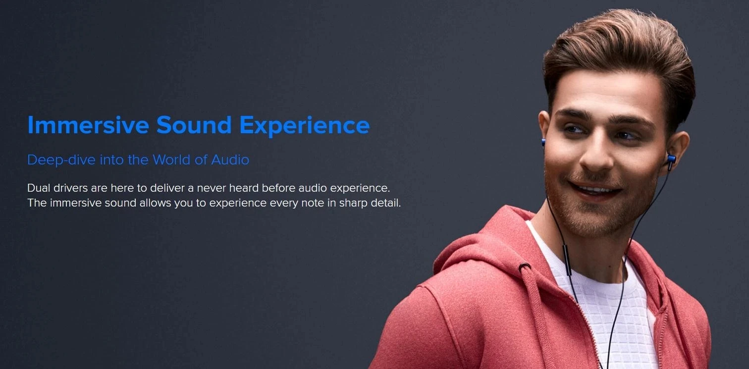 Features dual drivers that make sure every note is heard Passive noise cancellation makes sure that you’re listening to the music and the music alone With braided cables, magnetic earbuds and 3-button operation, listening to music becomes convenient as ever The outer shell features an elegant carbon finish for a timeless look Hear the music loud and clear with the impeccable range offered by the Mi Dual Driver In-Ear Earphones.